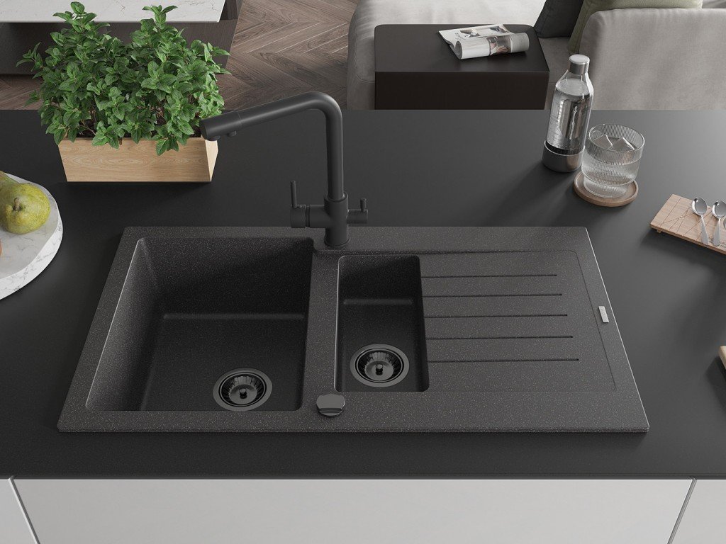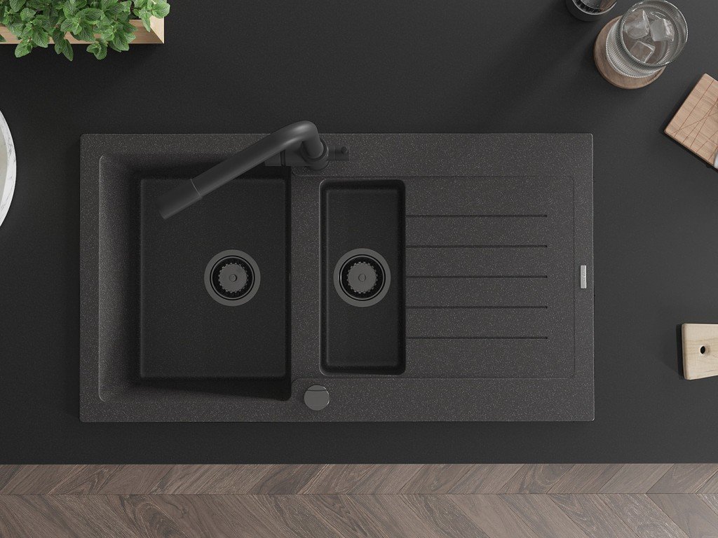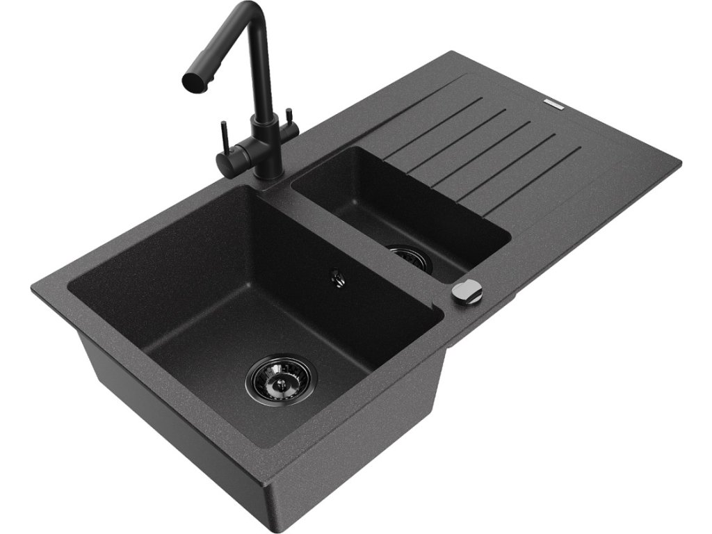MEXEN/S - Matias granitový dřez 1.5 s odkapávačem včetně baterie Duero, černá kropenatý 6502-76-671600-70-B
