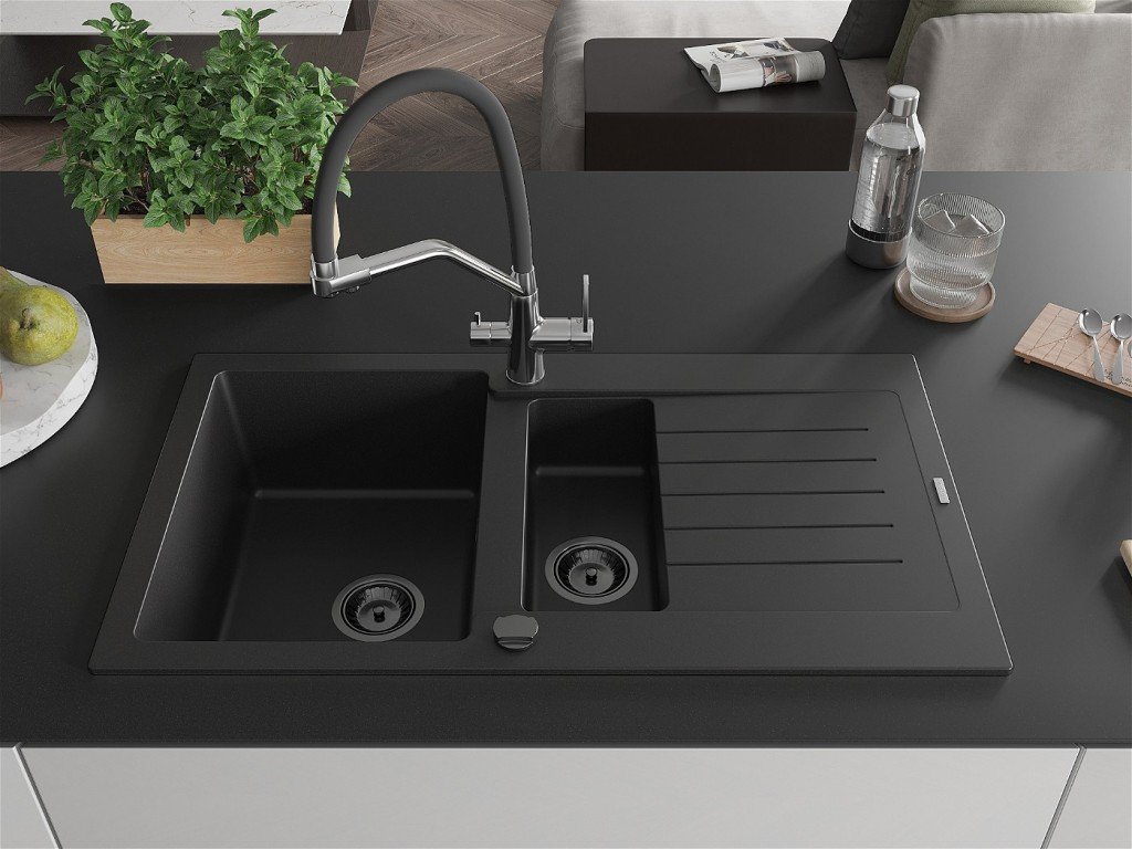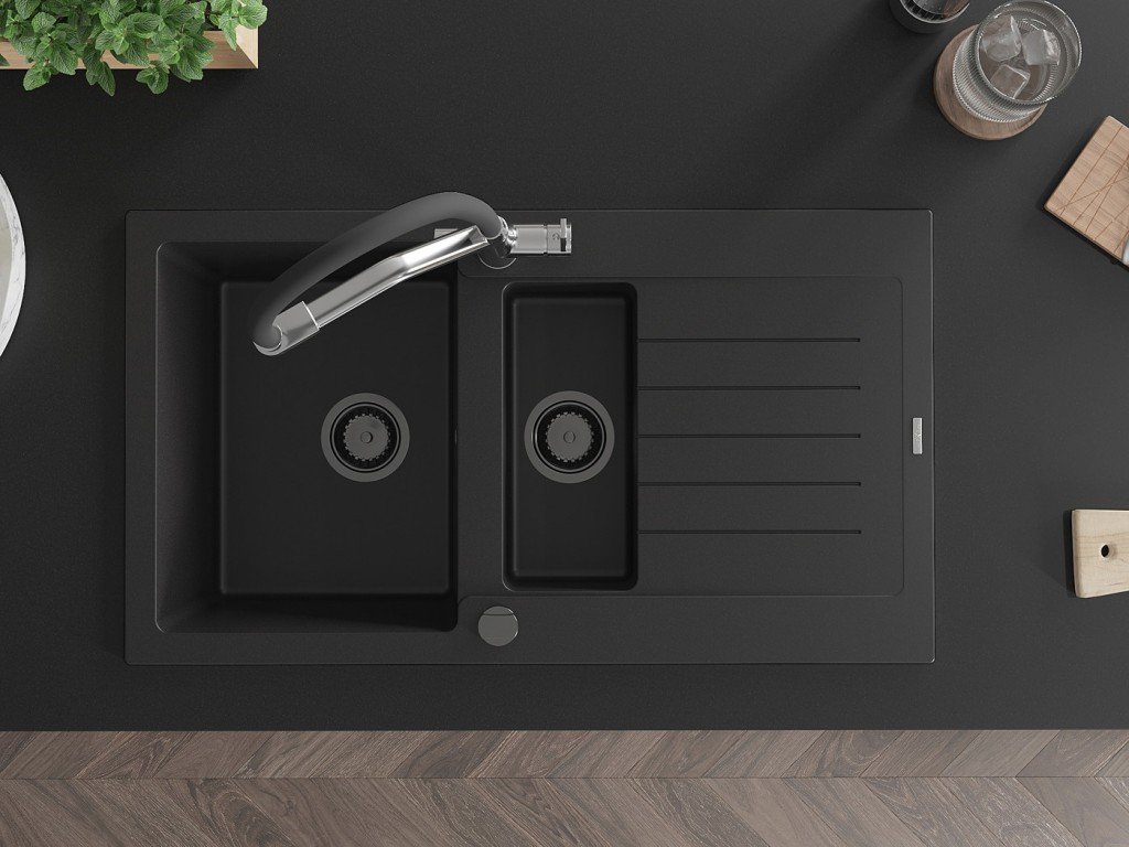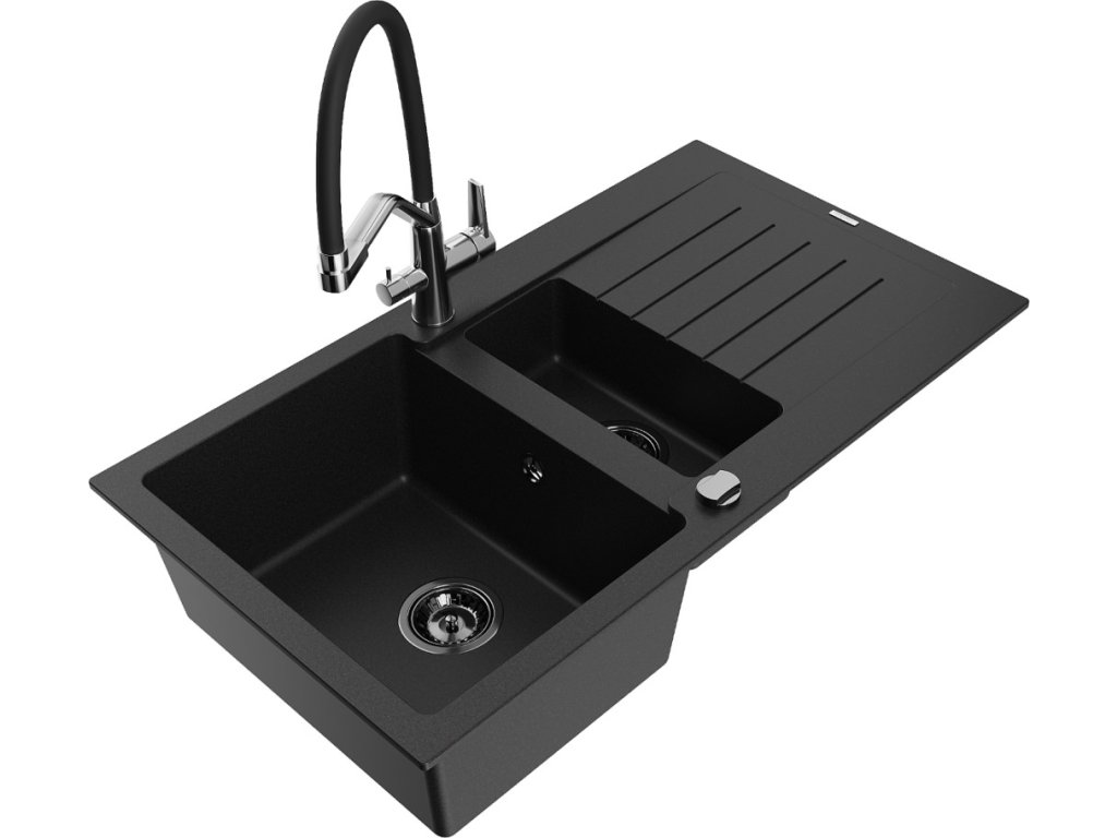 MEXEN/S - Matias granitový dřez 1.5 s odkapávačem včetně baterie Duo, černá 6502-77-671701-07-B