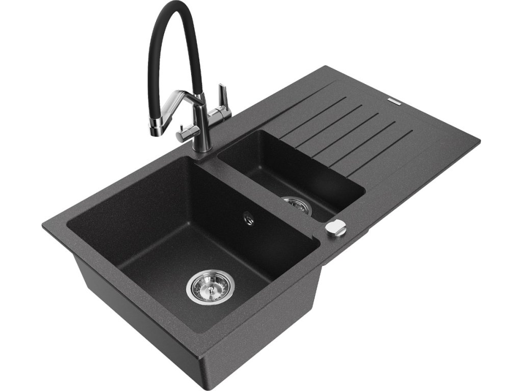MEXEN/S - Matias granitový dřez 1.5 s odkapávačem včetně baterie Duo, černá kropenatá 6502-76-671701-07