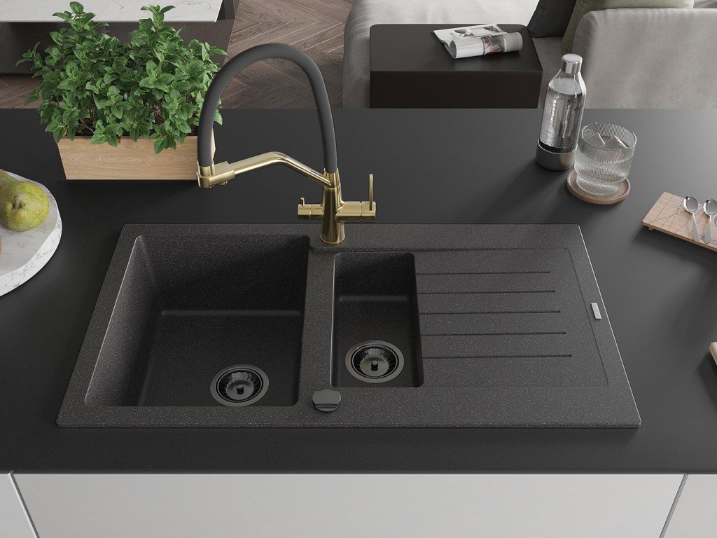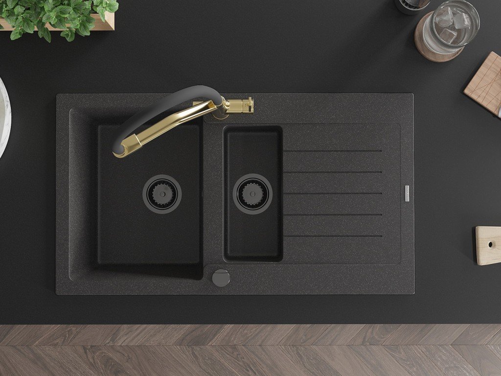 MEXEN/S - Matias granitový dřez 1.5 s odkapávačem včetně baterie Duo, černá kropenatá 6502-76-671701-57-B