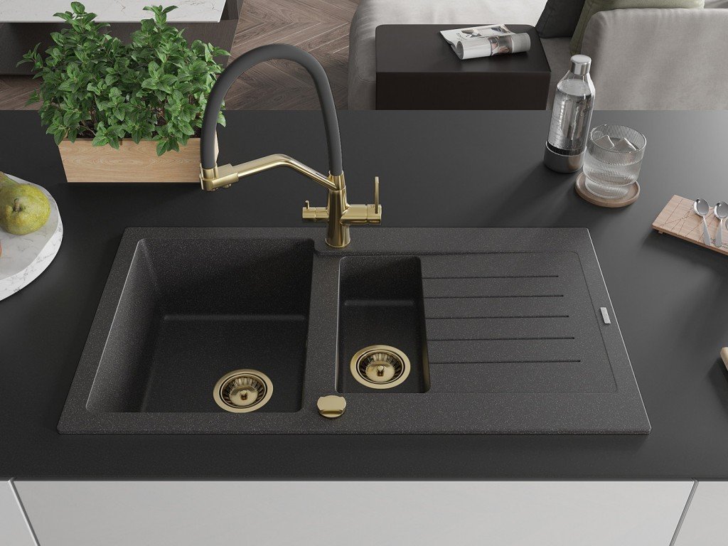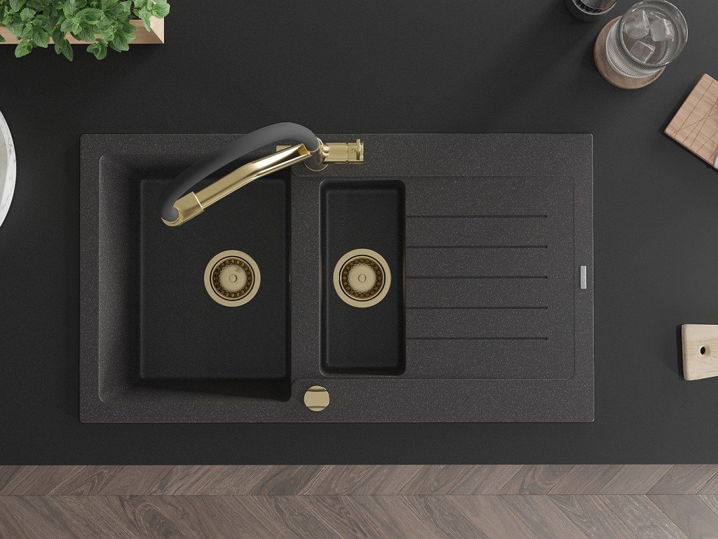 MEXEN/S - Matias granitový dřez 1.5 s odkapávačem včetně baterie Duo, černá kropenatá 6502-76-671701-57-G