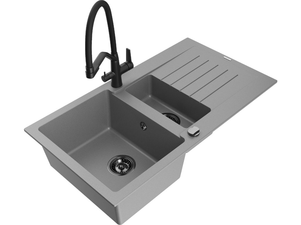 MEXEN/S - Matias granitový dřez 1.5 s odkapávačem včetně baterie Duo, šedá 6502-71-671701-70-B