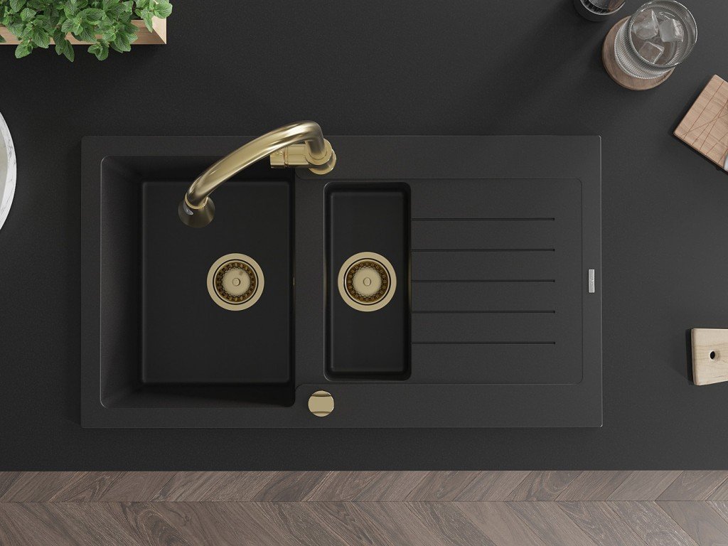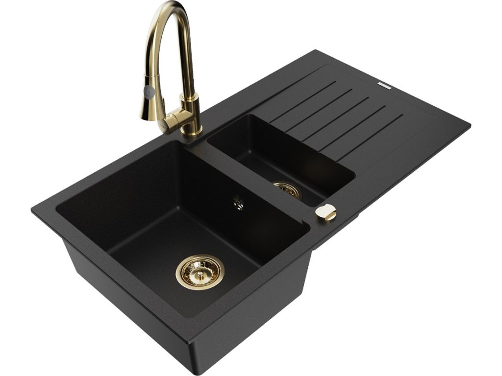 MEXEN/S - Matias granitový dřez 1.5 s odkapávačem včetně baterie Elia, černá 6502-77-670101-50