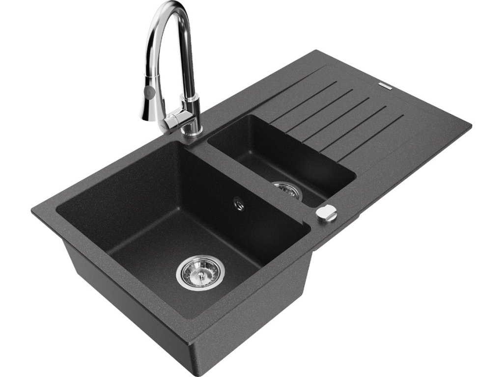 MEXEN/S - Matias granitový dřez 1.5 s odkapávačem včetně baterie Elia, černá kropenatá 6502-76-670101-00