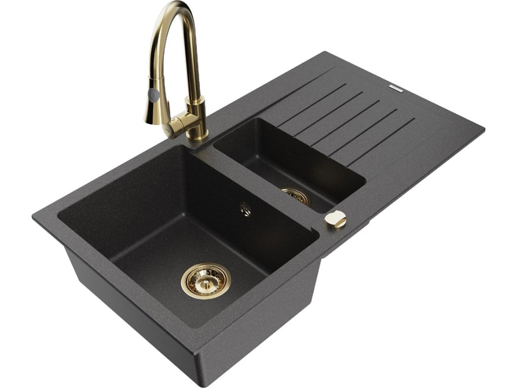 MEXEN/S - Matias granitový dřez 1.5 s odkapávačem včetně baterie Elia, černá kropenatá 6502-76-670101-50