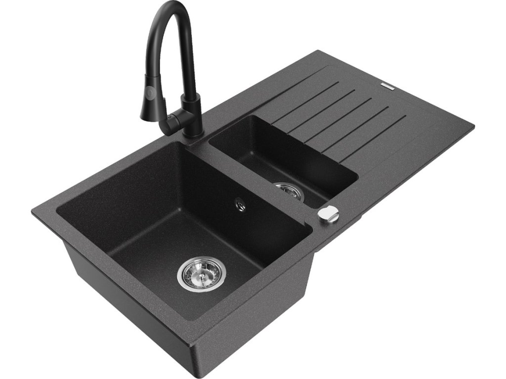 MEXEN/S - Matias granitový dřez 1.5 s odkapávačem včetně baterie Elia, černá kropenatá 6502-76-670101-70