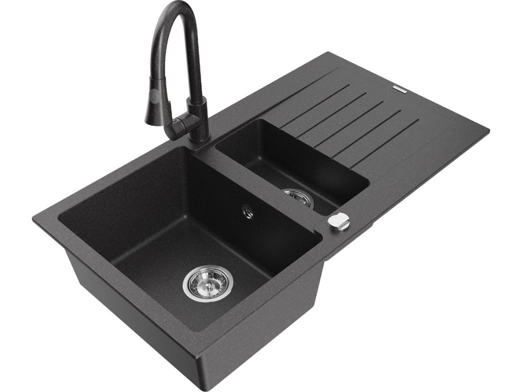 MEXEN/S - Matias granitový dřez 1.5 s odkapávačem včetně baterie Elia, černá kropenatá 6502-76-670101-76