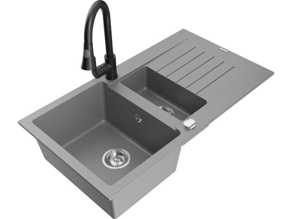 MEXEN/S - Matias granitový dřez 1.5 s odkapávačem včetně baterie Elia, šedá 6502-71-670101-70