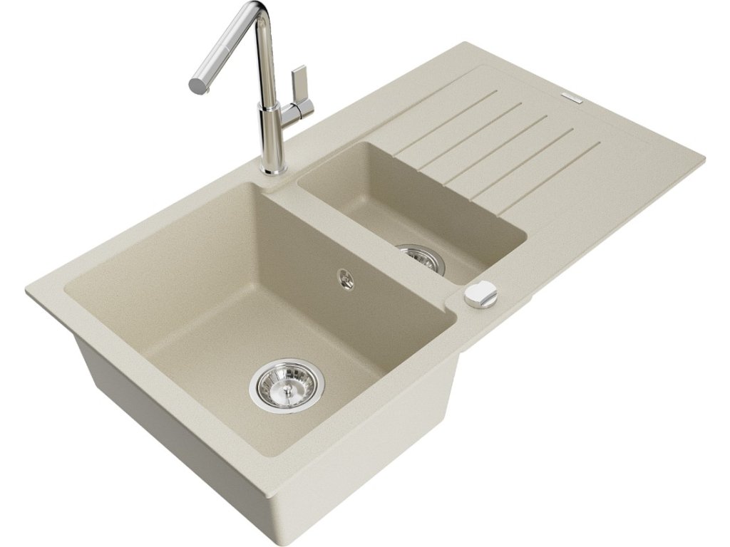 MEXEN/S - Matias granitový dřez 1.5 s odkapávačem včetně baterie Flora, béžová 6502-69-670401-00