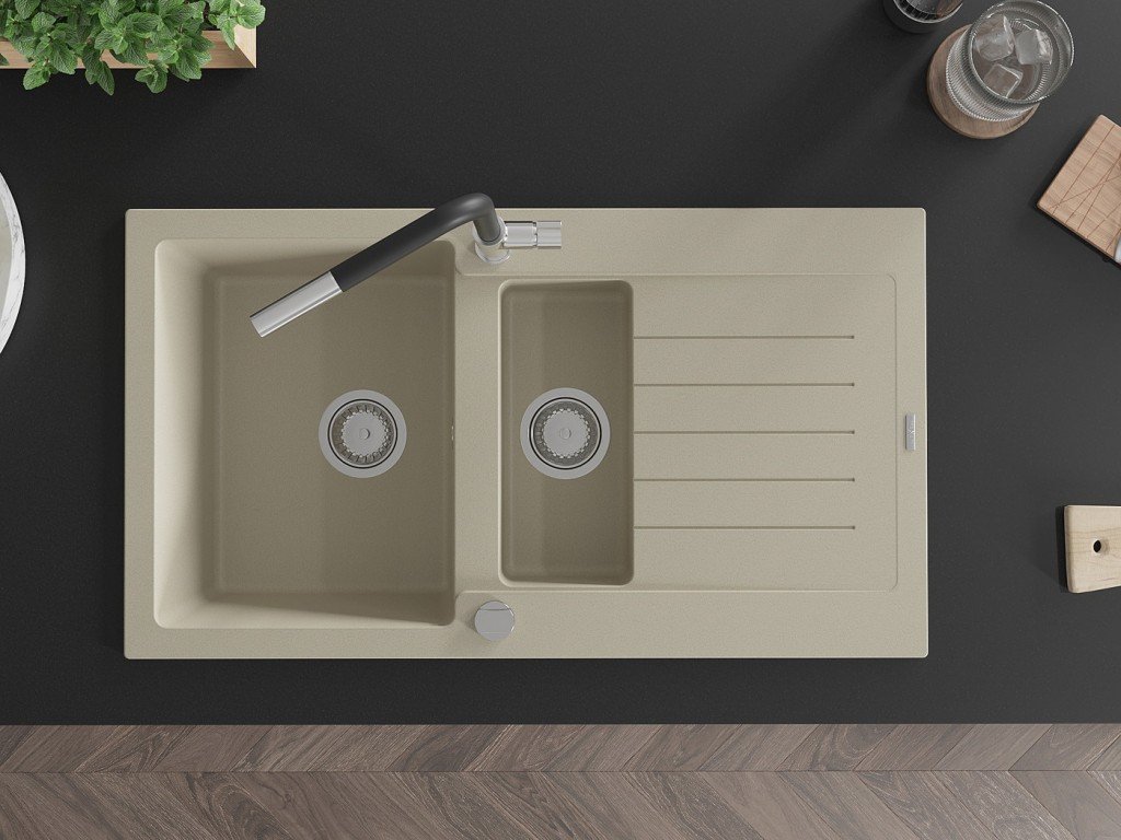 MEXEN/S - Matias granitový dřez 1.5 s odkapávačem včetně baterie Flora, béžová 6502-69-670401-07