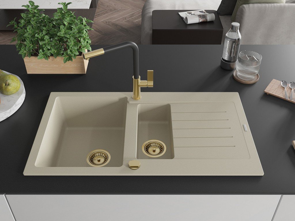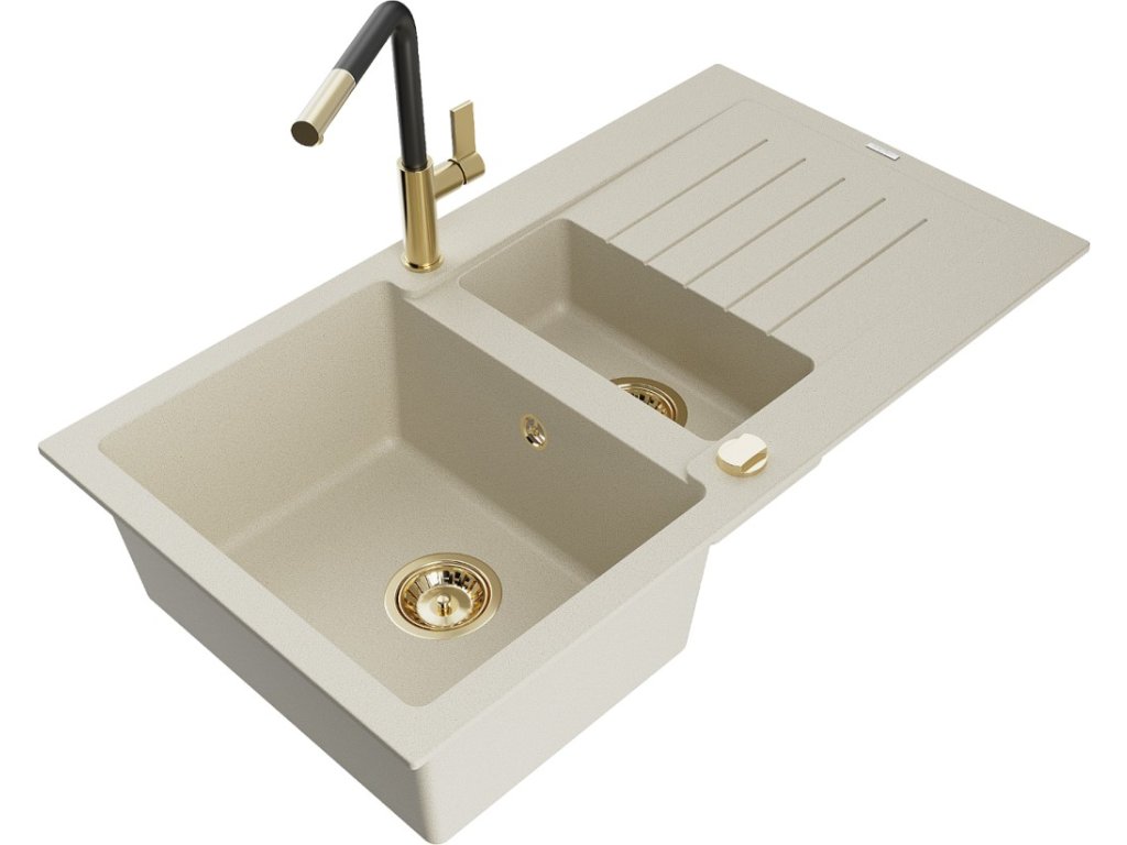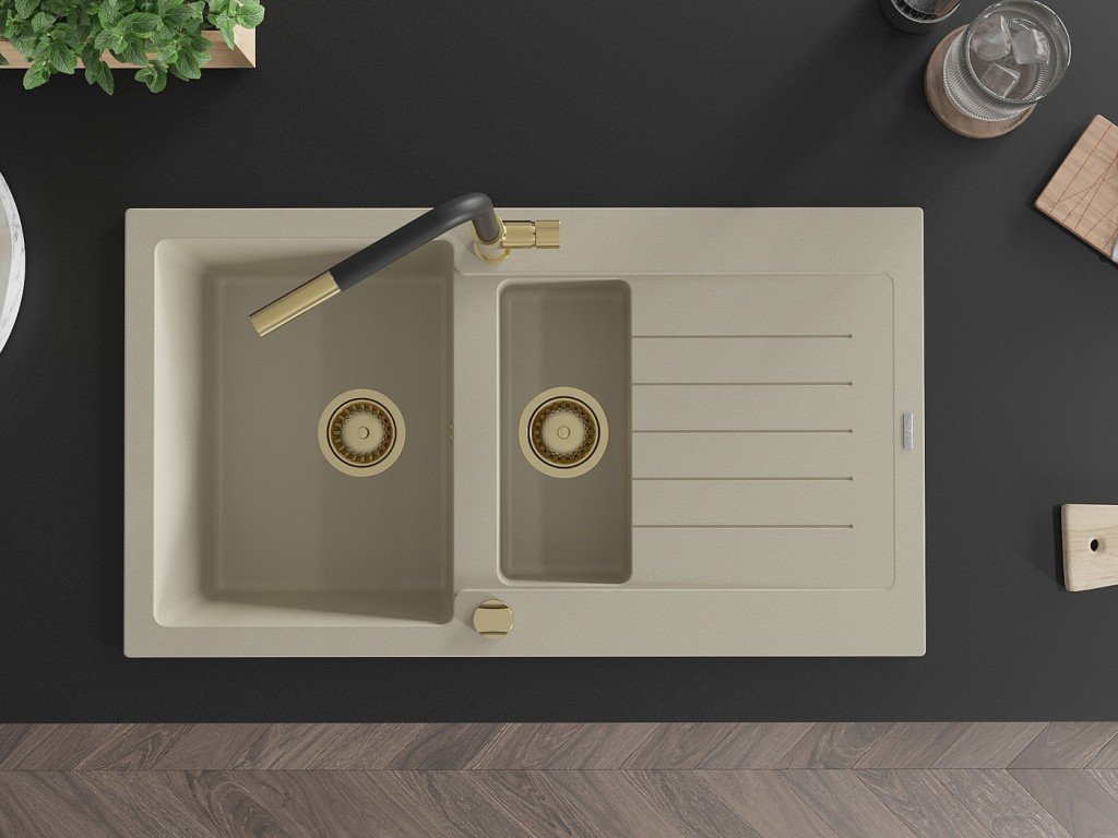 MEXEN/S - Matias granitový dřez 1.5 s odkapávačem včetně baterie Flora, béžová 6502-69-670401-57-G