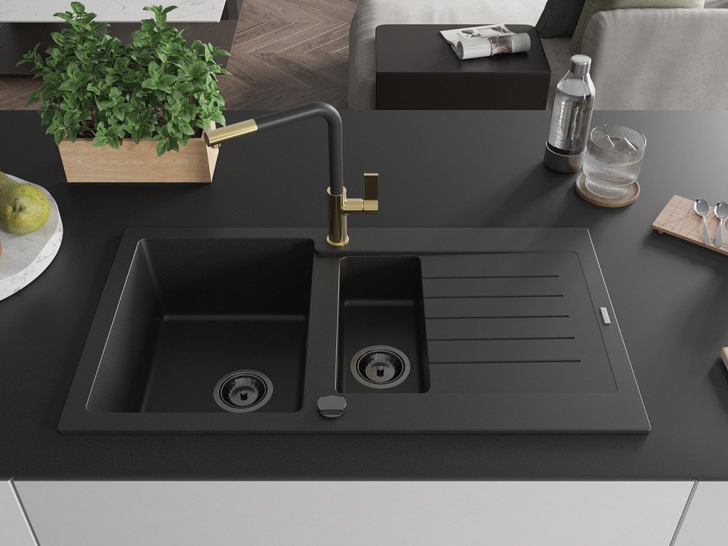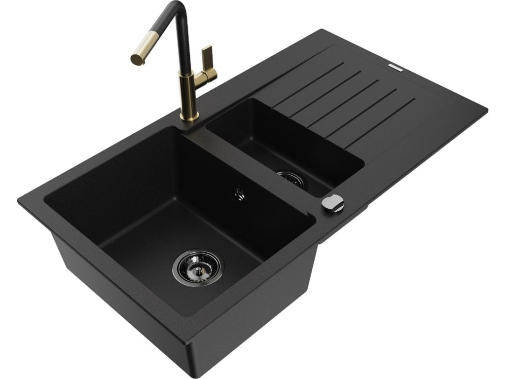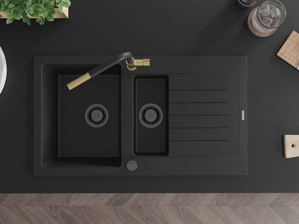 MEXEN/S - Matias granitový dřez 1.5 s odkapávačem včetně baterie Flora, černá 6502-77-670401-57-B