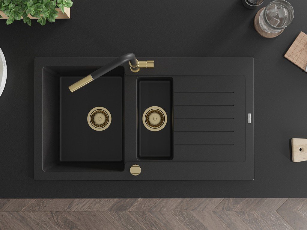 MEXEN/S - Matias granitový dřez 1.5 s odkapávačem včetně baterie Flora, černá 6502-77-670401-57-G