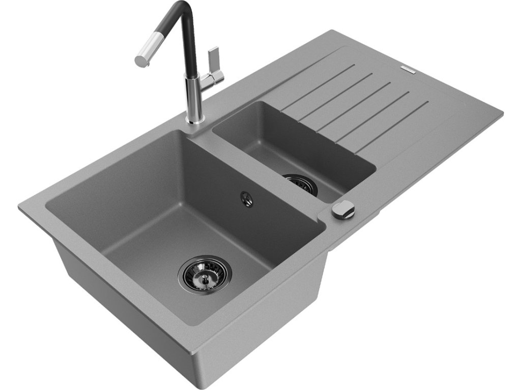 MEXEN/S - Matias granitový dřez 1.5 s odkapávačem včetně baterie Flora, šedá 6502-71-670401-07-B