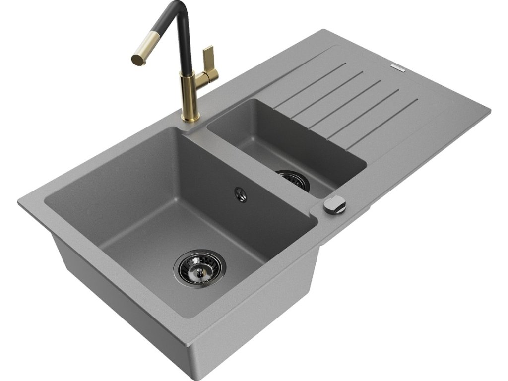 MEXEN/S - Matias granitový dřez 1.5 s odkapávačem včetně baterie Flora, šedá 6502-71-670401-57-B