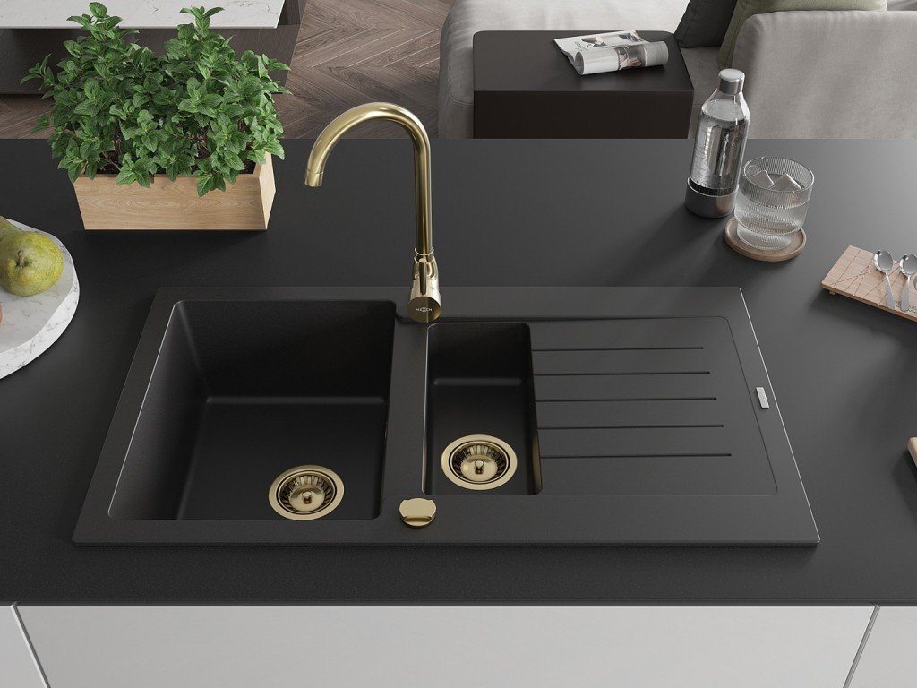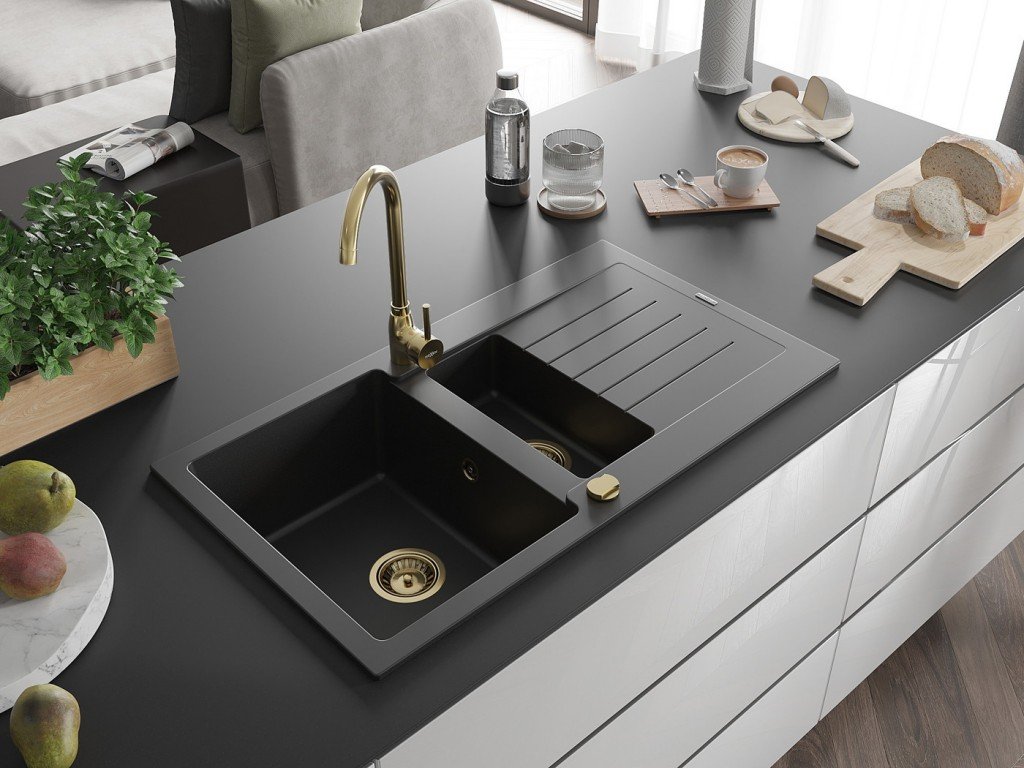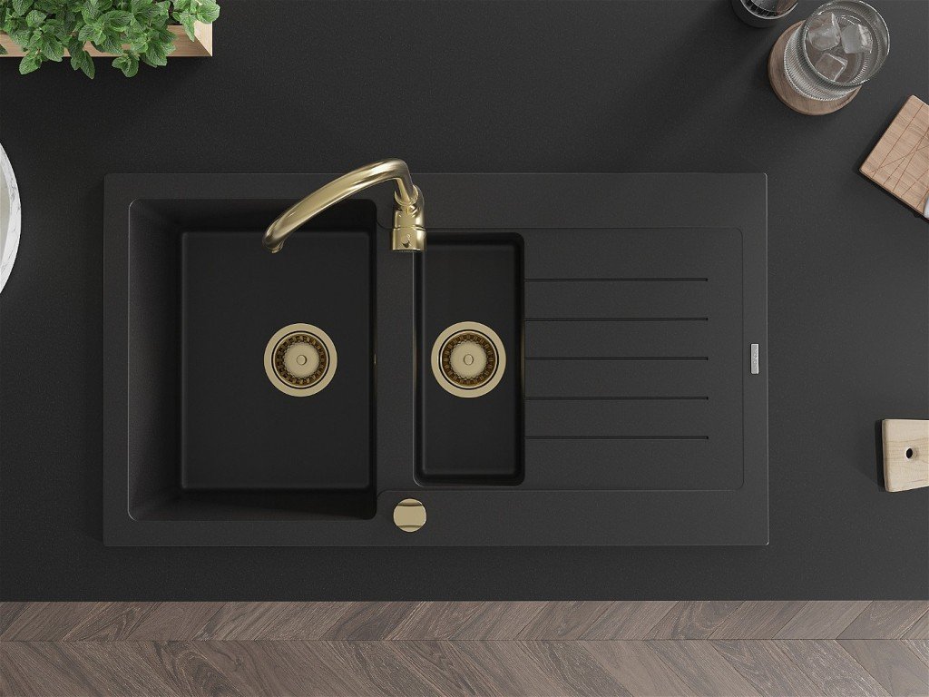 MEXEN/S - Matias granitový dřez 1.5 s odkapávačem včetně baterie Telma, černá 6502-77-670200-50