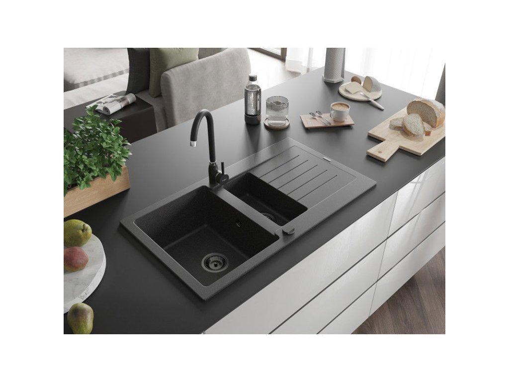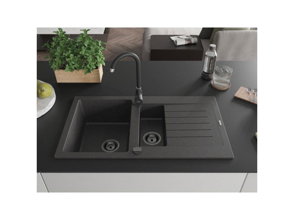 MEXEN/S - Elias granitový dřez 1 s odkapávačem včetně baterie Aster, černá 6511-77-73450-70-B