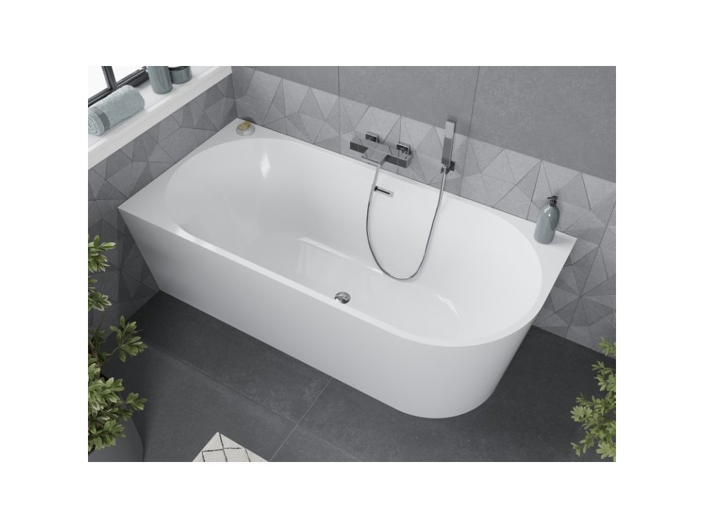 MEXEN/S - Mia volně stojící rohová vana levá 140 x 75, bílá, sifon a přepad chrom 52691407500L-01