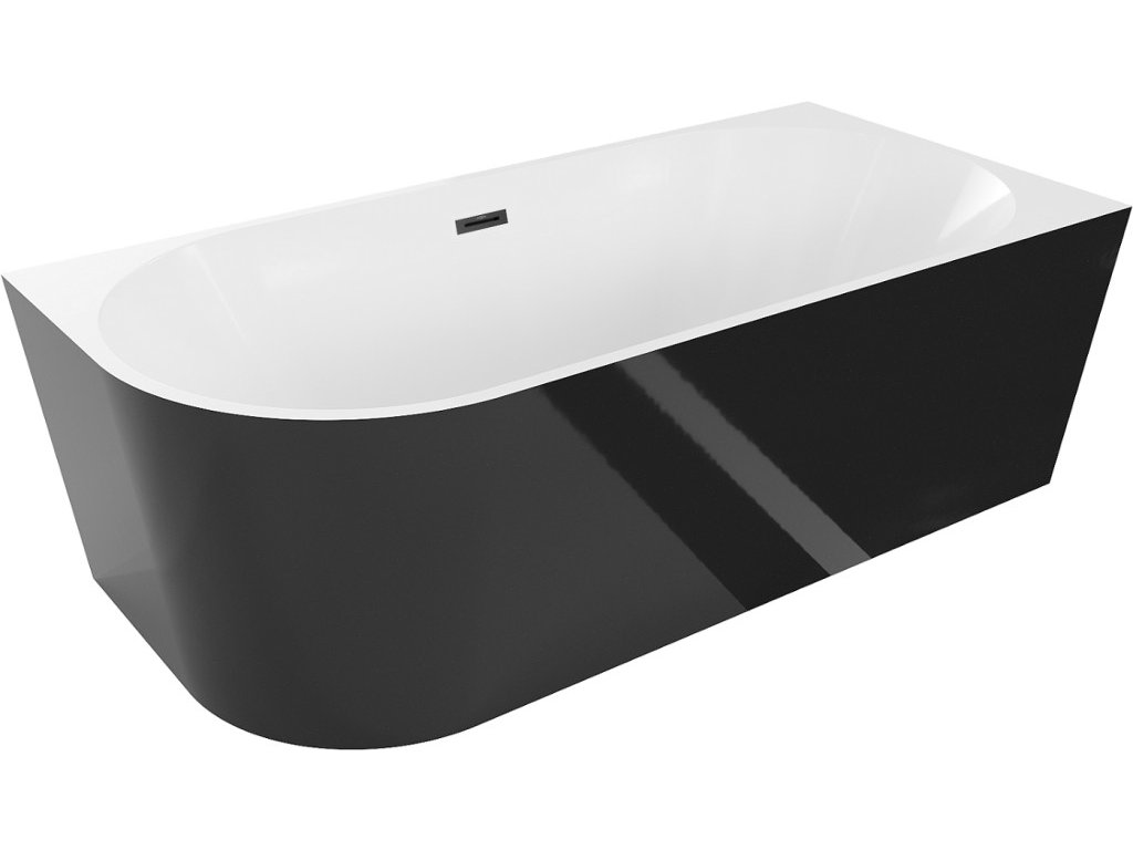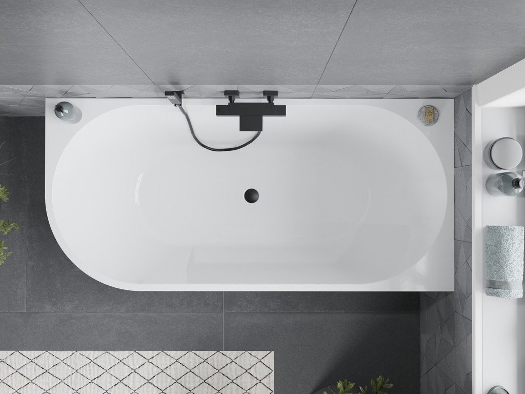 MEXEN/S - Mia volně stojící rohová vana pravá 170 x 80, bílá/černá, sifon a přepad černá 52691708075P-70
