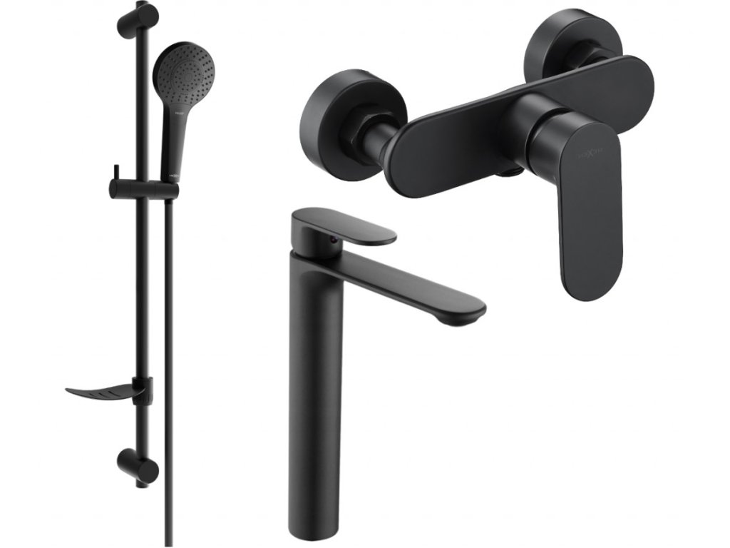 MEXEN/S - Milo DF05 SET umyvadlová baterie + sprchová s příslušenstvím, černá 71314DF05-70
