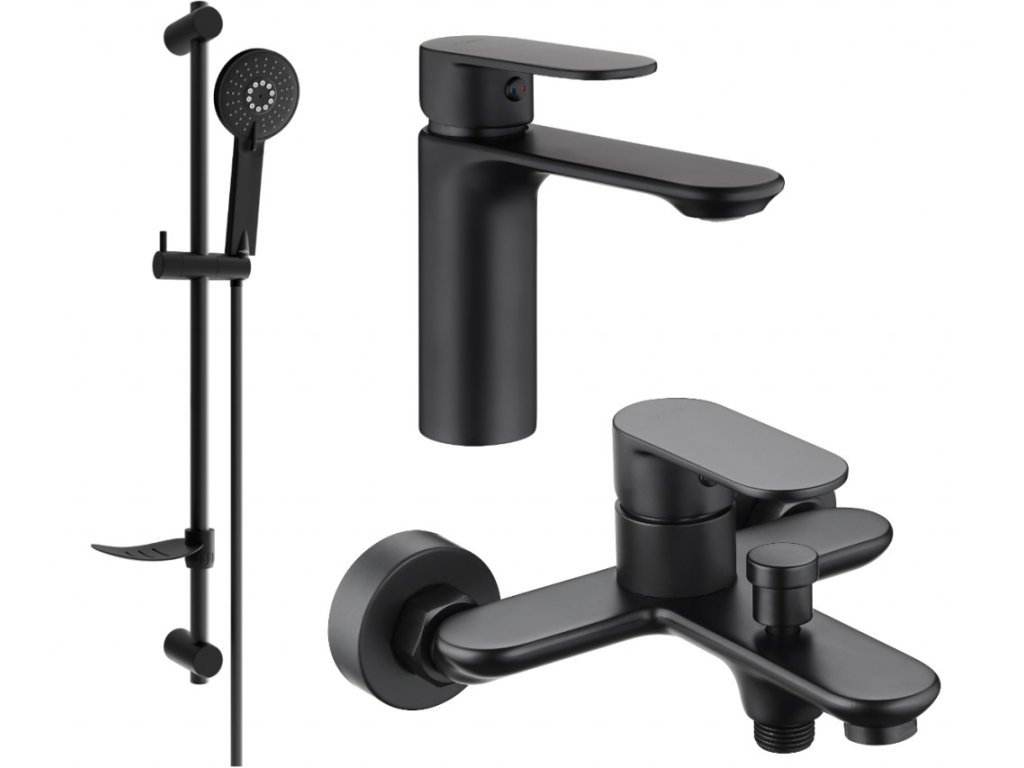 MEXEN/S - Milo DF40 SET umyvadlová a vanová baterie s příslušenstvím, černá 71303DF40-70