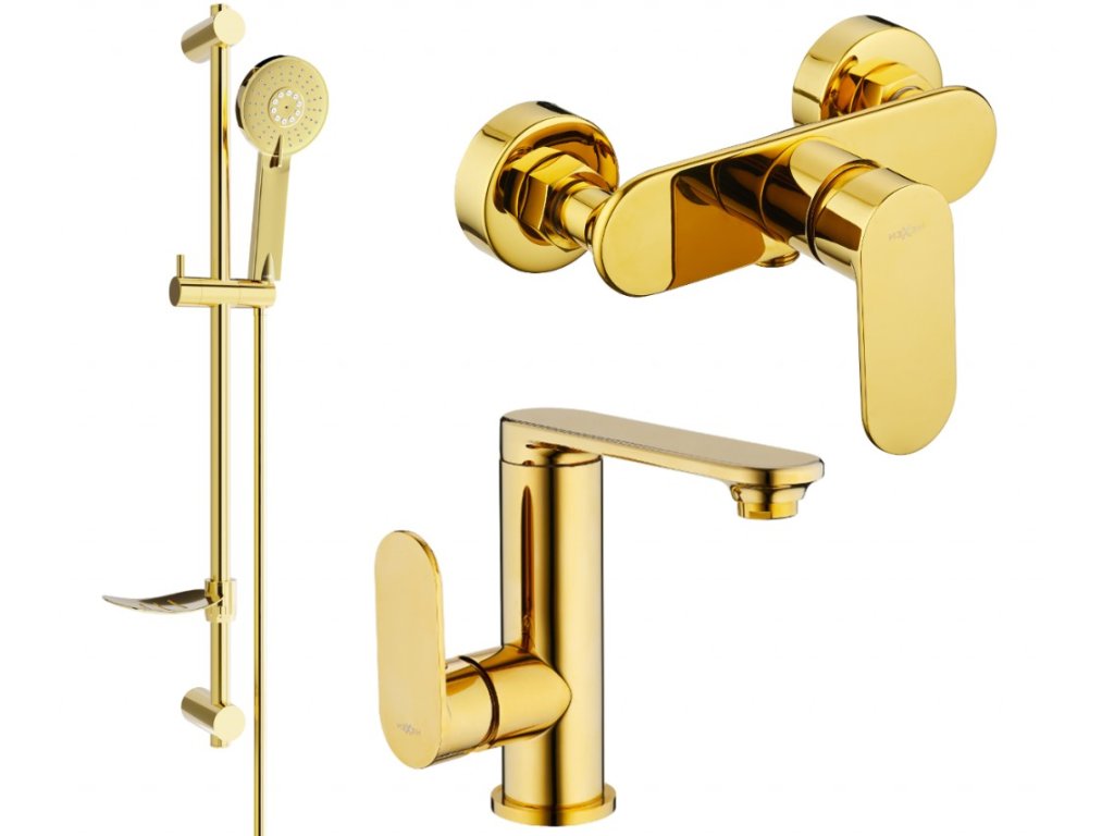 MEXEN/S - Milo DF40 Set umyvadlové a sprchová baterie s příslušenstvím, zlato 713054DF40-50