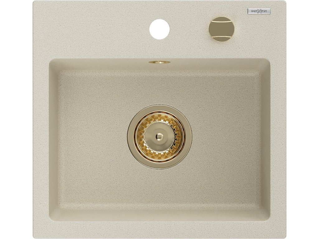 MEXEN/S - Milo granitový dřez 1 435 x 410 mm, béžová, + zlatý sifon 6505441000-69-G