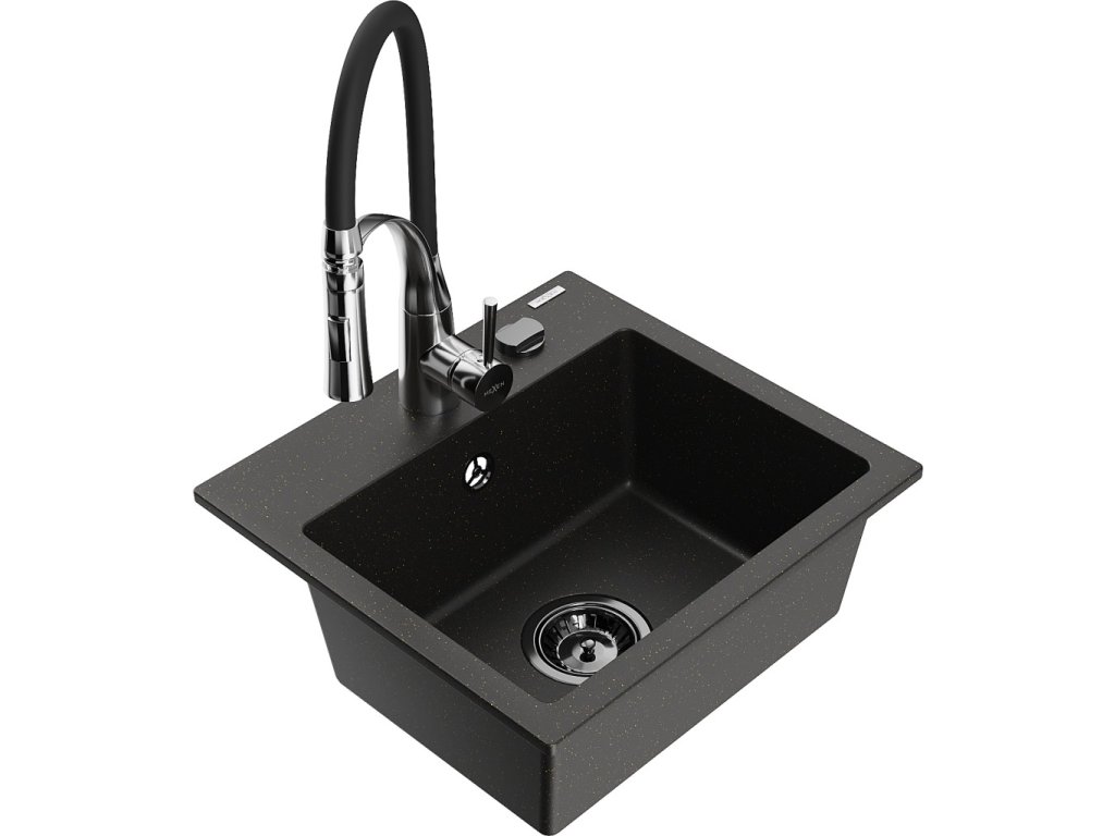 MEXEN/S - Milo granitový dřez 1-miska včetně baterie Aster, černá/zlatá metalik 6505-75-73450-07-B