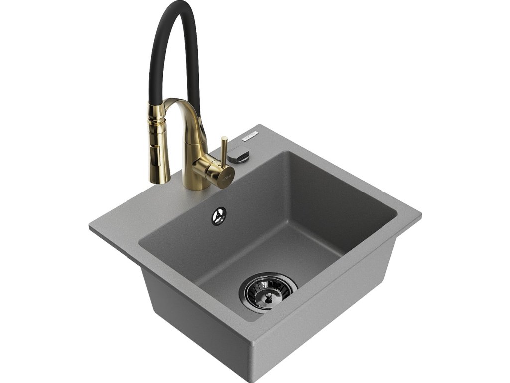 MEXEN/S - Milo granitový dřez 1-miska včetně baterie Aster, šedá 6505-71-73450-57-B