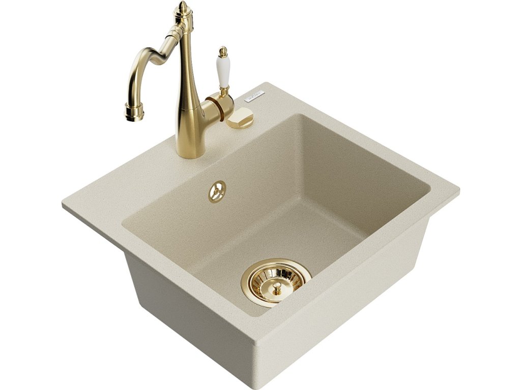 MEXEN/S - Milo granitový dřez 1-miska včetně baterie Carla, béžová 6505-69-670700-50