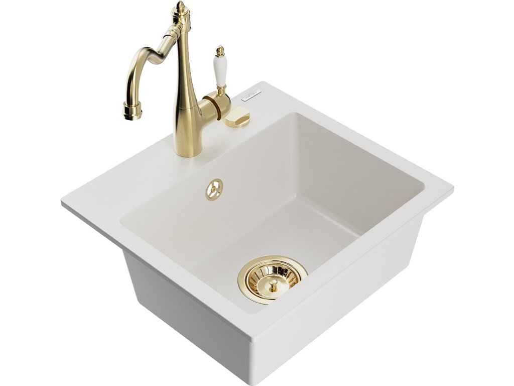MEXEN/S - Milo granitový dřez 1-miska včetně baterie Carla, bílá 6505-20-670700-50