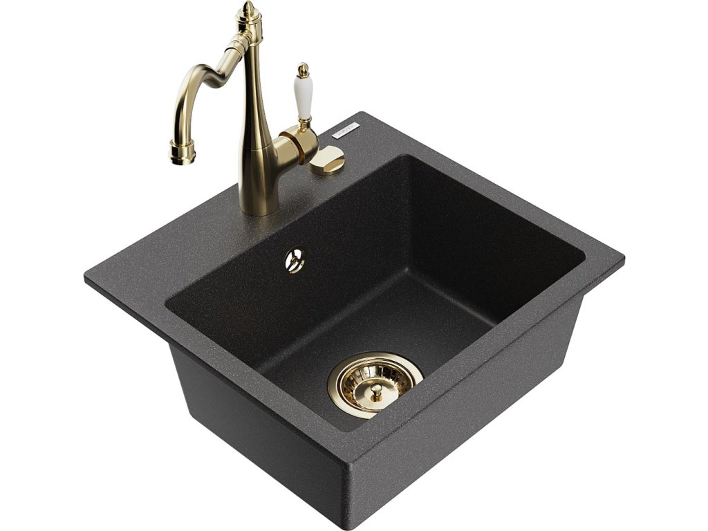 MEXEN/S - Milo granitový dřez 1-miska včetně baterie Carla, černá kropenatá 6505-76-670700-50