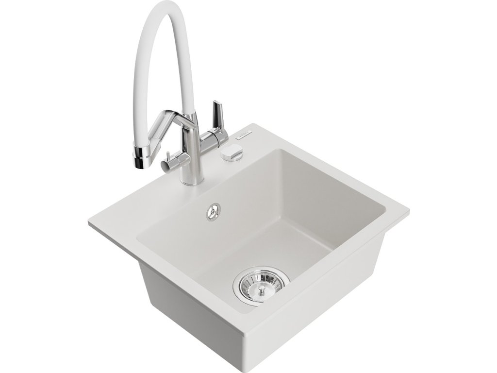 MEXEN/S - Milo granitový dřez 1-miska včetně baterie Duo, bílá 6505-20-671701-02