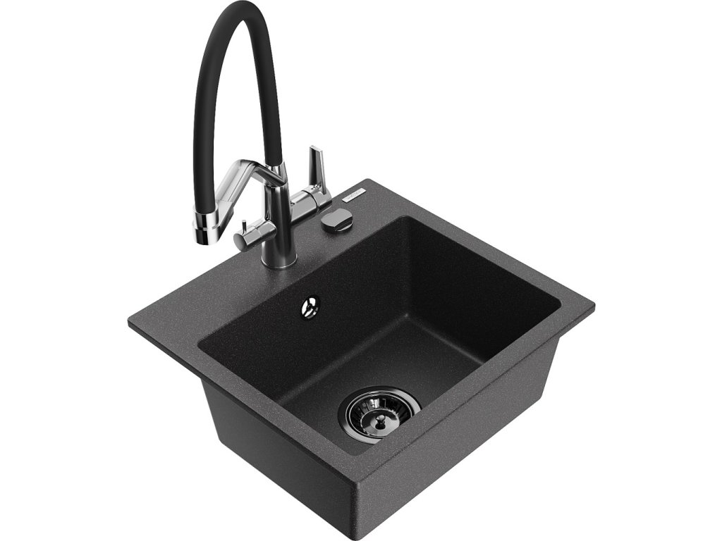 MEXEN/S - Milo granitový dřez 1-miska včetně baterie Duo, černá kropenatá 6505-76-671701-07-B