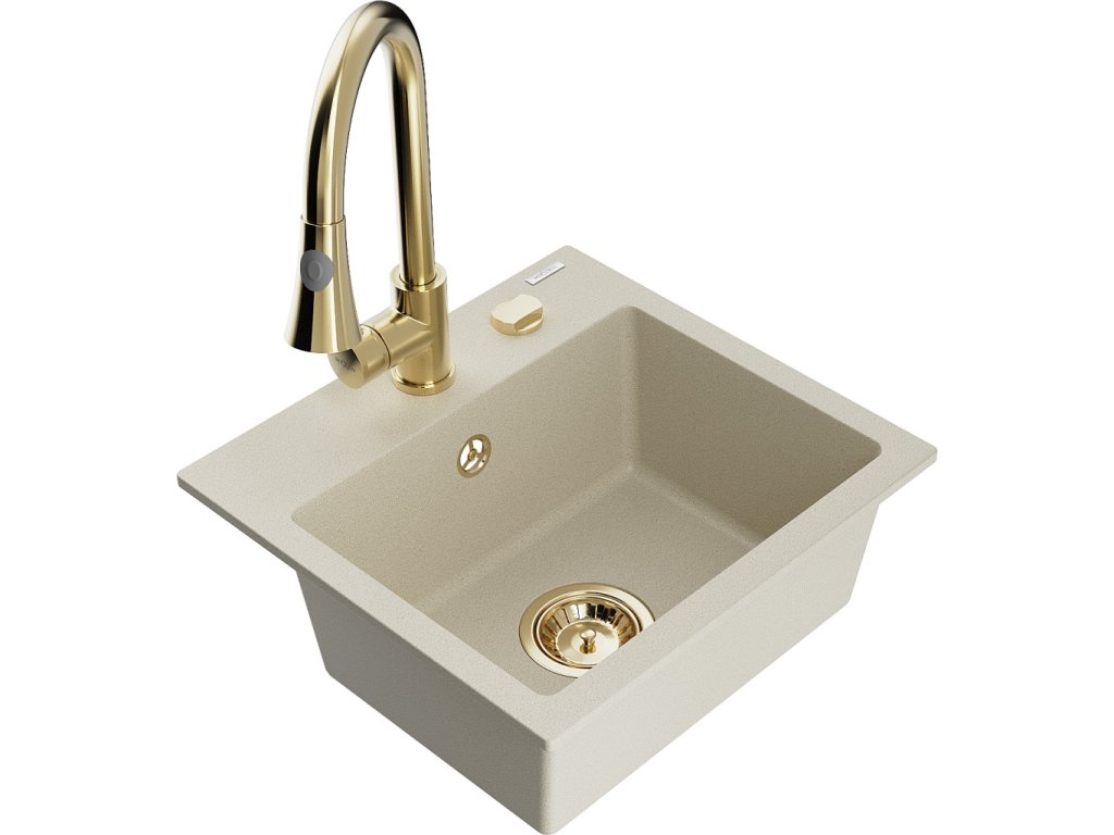 MEXEN/S - Milo granitový dřez 1-miska včetně baterie Elia, béžová 6505-69-670101-50