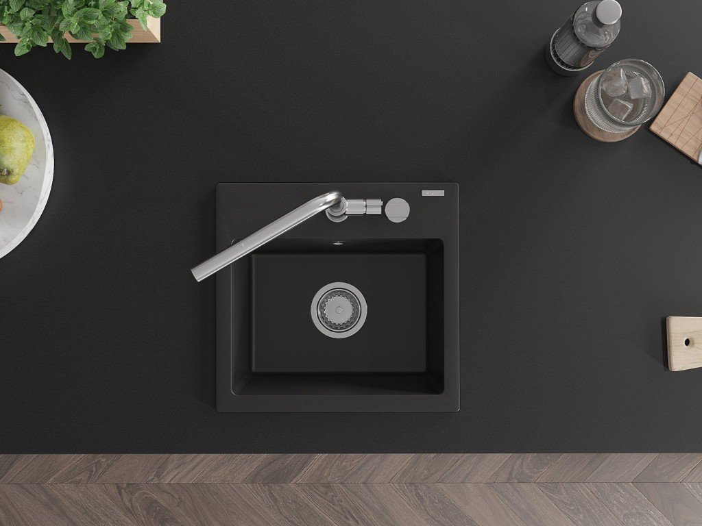 MEXEN/S - Milo granitový dřez 1-miska včetně baterie Flora, černá 6505-77-670401-00