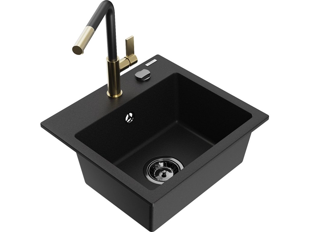 MEXEN/S - Milo granitový dřez 1-miska včetně baterie Flora, černá 6505-77-670401-57-B