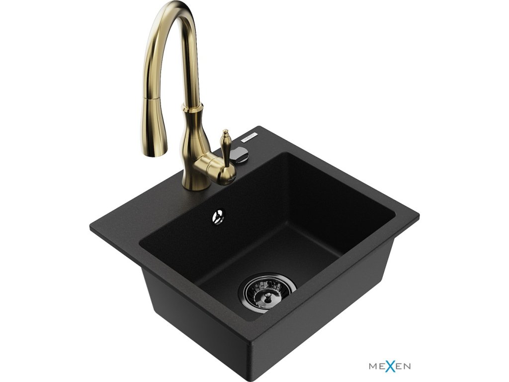 MEXEN/S - Milo granitový dřez 1-miska včetně baterie Savita, černá 6505-77-672601-50-B