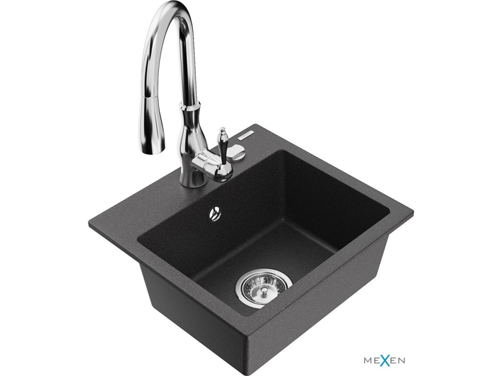 MEXEN/S - Milo granitový dřez 1-miska včetně baterie Savita, černá kropenatá 6505-76-672601-00