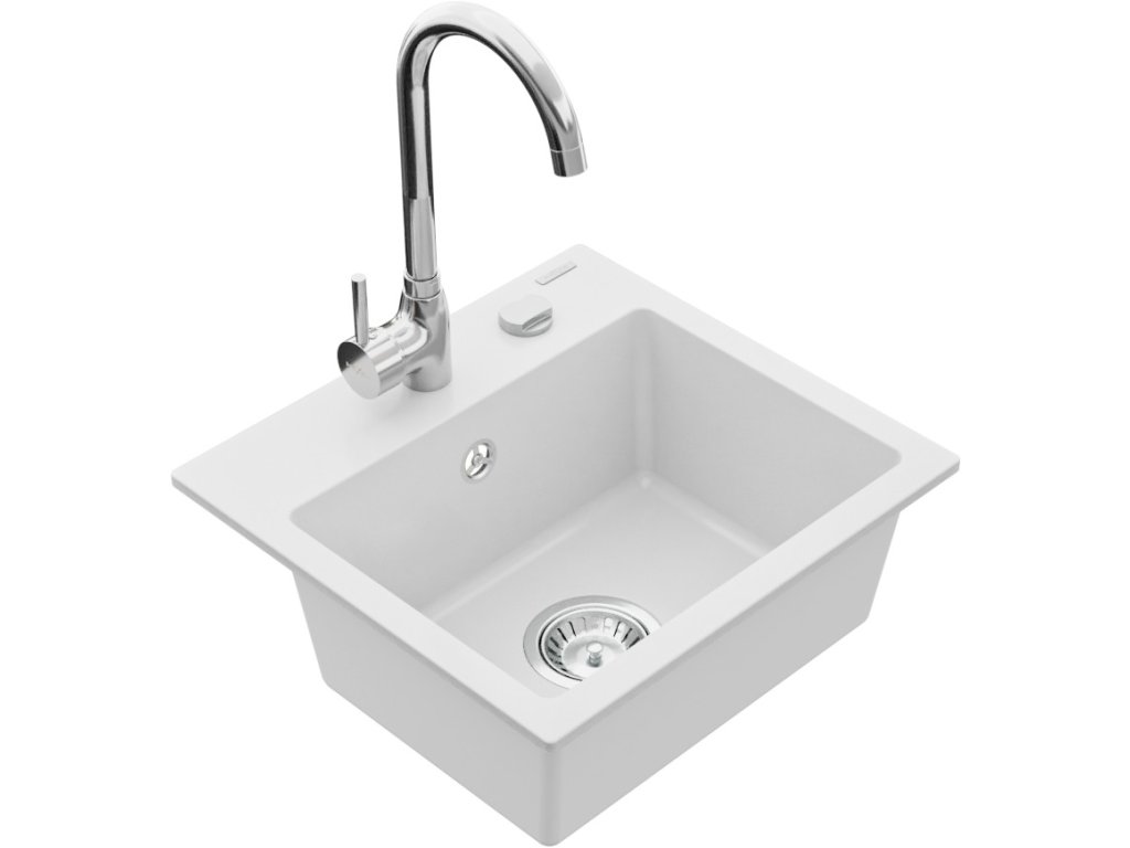 MEXEN/S - Milo granitový dřez 1-miska včetně baterie Telma, bílá 6505-20-670200-00