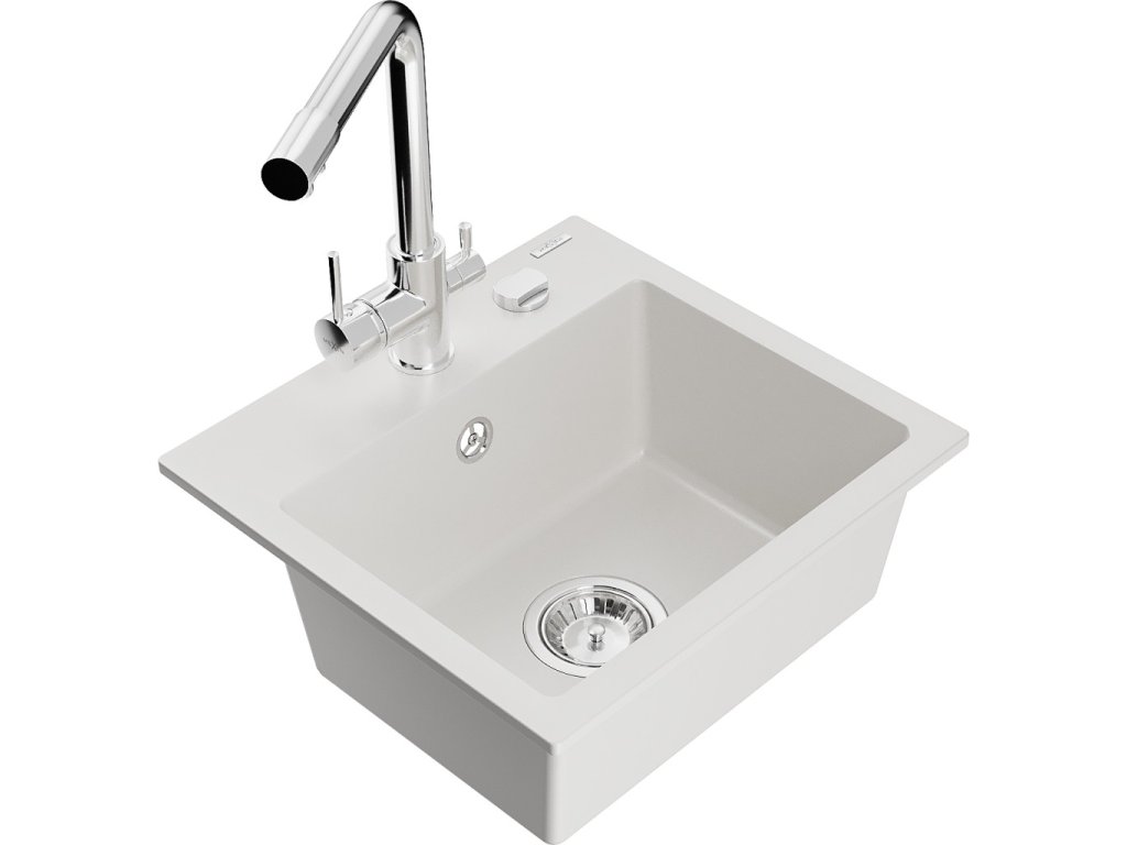 MEXEN/S - Milo granitový dřez včetně baterie Duero, bílá 6505-20-671600-00
