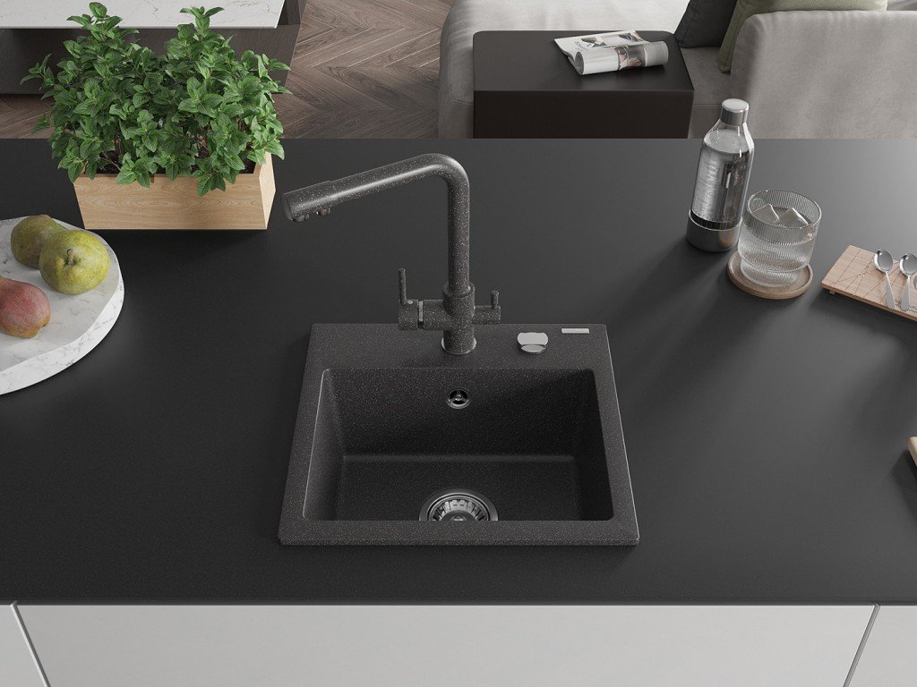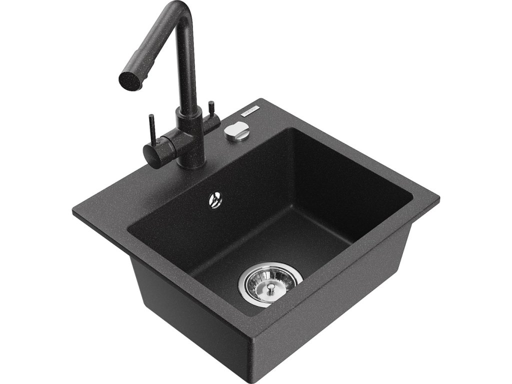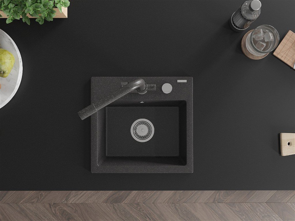 MEXEN/S - Milo granitový dřez včetně baterie Duero, černá kropenatá 6505-76-671600-76
