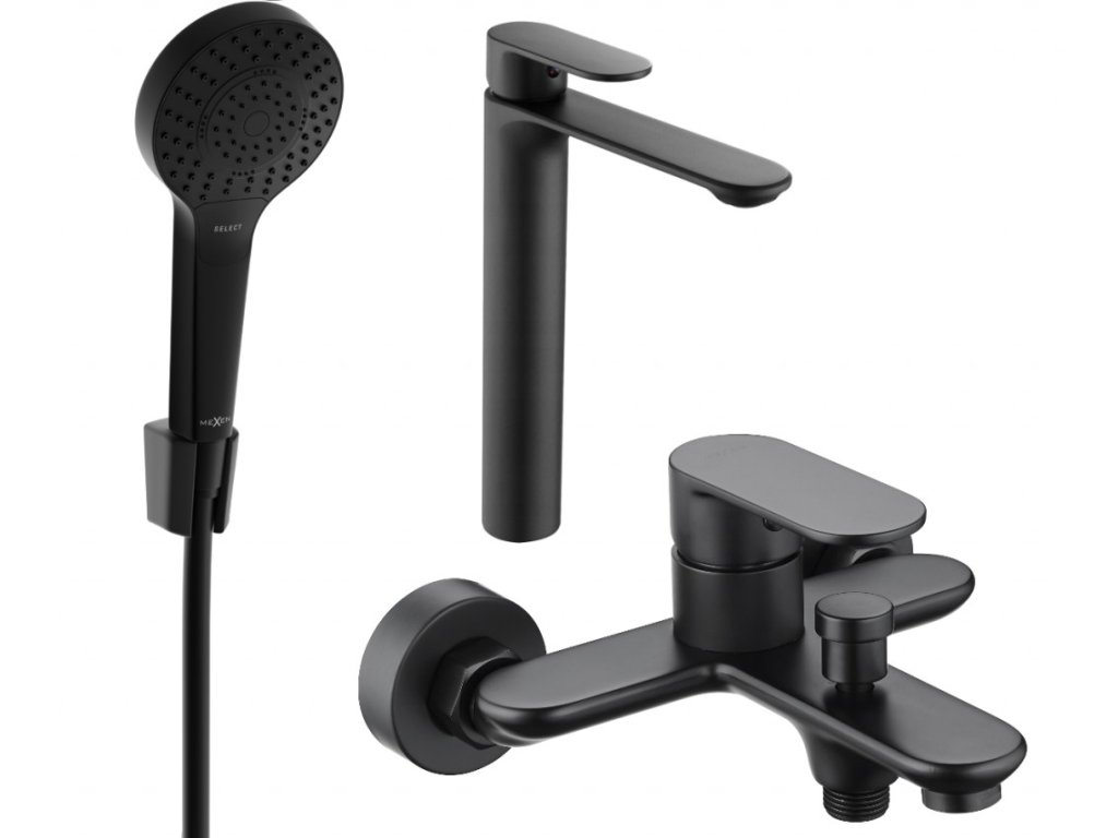 MEXEN/S - Milo R05 SET umyvadlová baterie + vanová s příslušenstvím, černá 71313R05-70