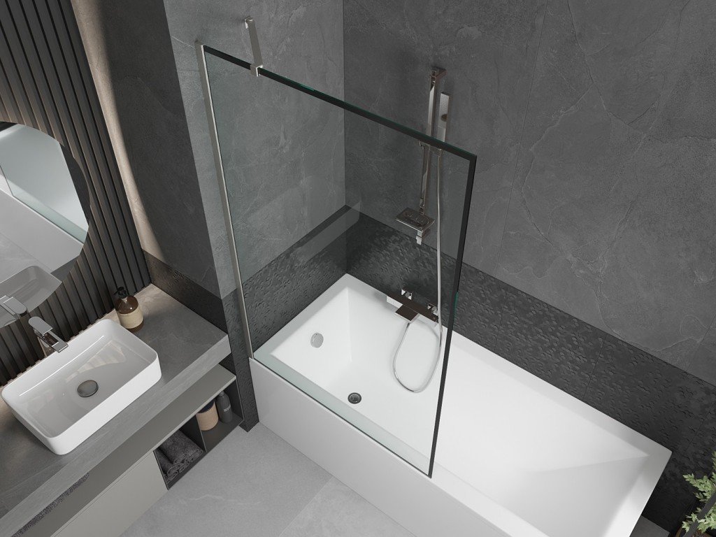 MEXEN/S - Next vanová zástěna FIX 100 x 150, černá vzor, nikl kartáčovaná 895-100-000-00-70-97