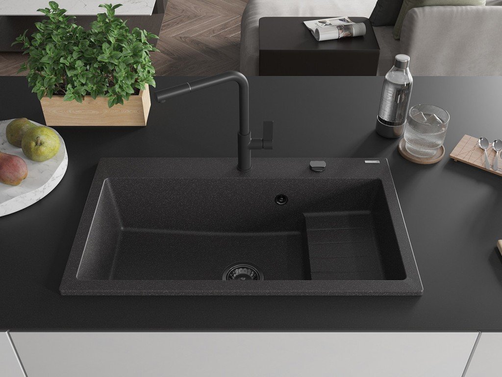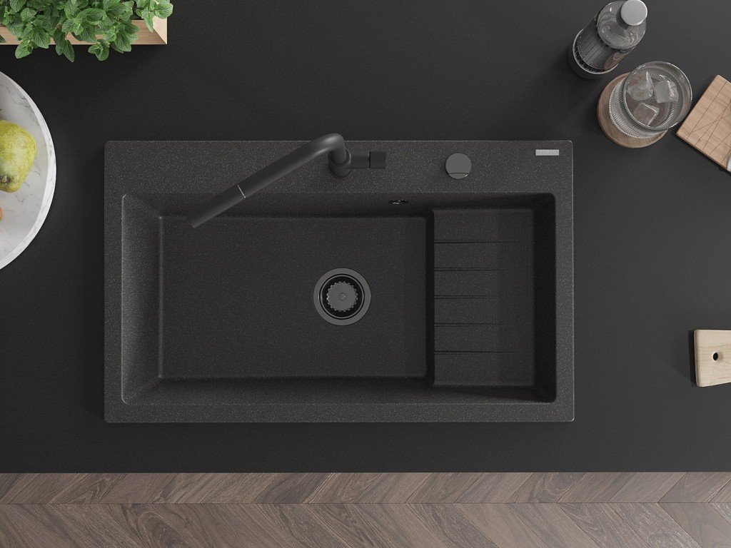 MEXEN/S - Pablo granitový dřez 1 s odkapávačem včetně baterie Aster, černá 6510-77-73450-70-B