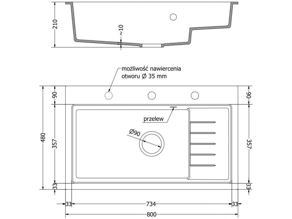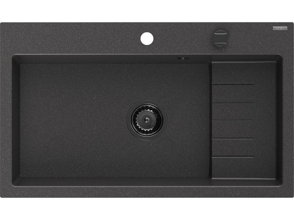 MEXEN/S - Omar granitový dřez 1-komorowy 800 x 480 mm, černý kropenatý, sifon černá 6520801005-76-B