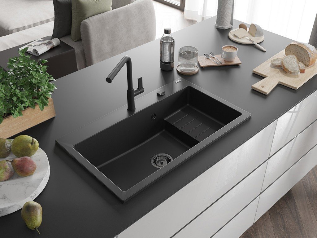 MEXEN/S - Omar granitový dřez 800 x 480 mm, černá, černý sifon 6520801005-77-B
