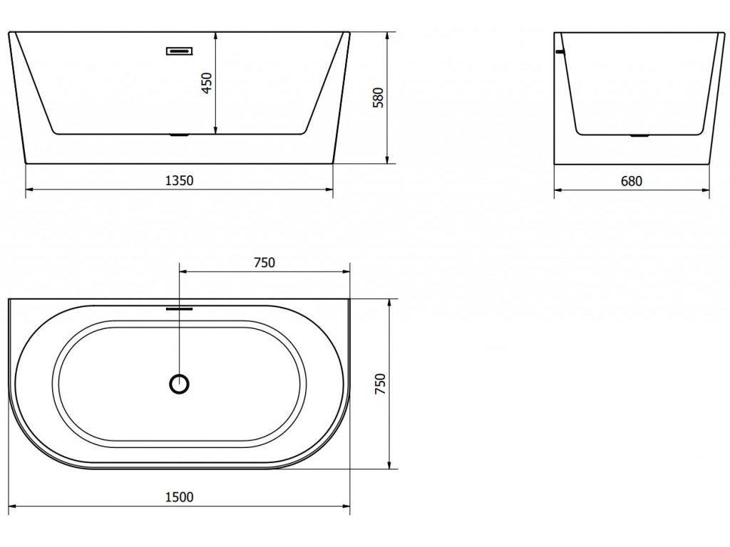 MEXEN/S - Oval vana volně stojící nástěnná 150 x 75, bílá, sifon a přepad černá 52671507500-70