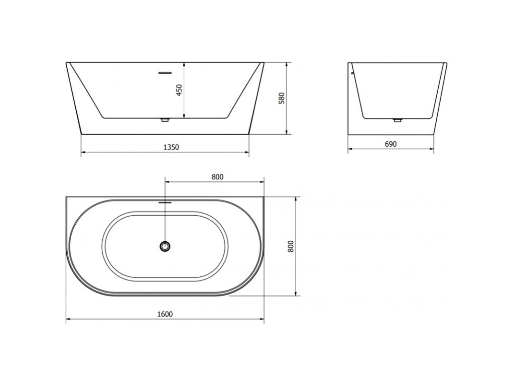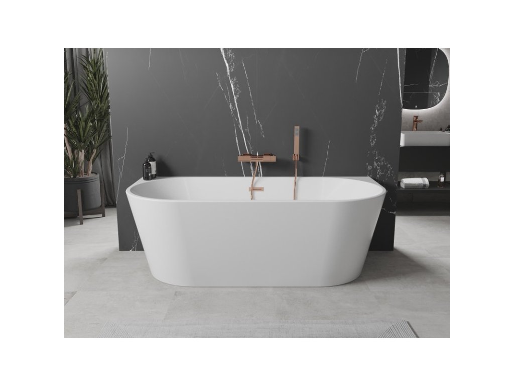MEXEN/S - Oval vana volně stojící nástěnná 160 x 80, bílá, sifon a přepad měď kartáčovaná 52671608000-65
