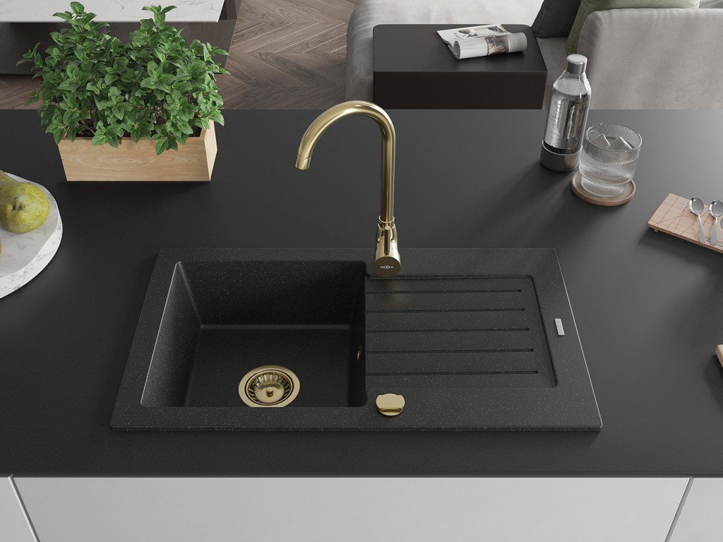 MEXEN/S - Enzo granitový dřez 1 s odkapávačem včetně baterie Aster, černá 6506-77-73450-70-B